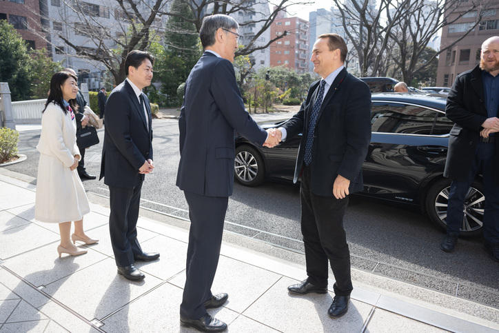 講演を行ったシコルスキ外相は、日本とポーランドの歴史的なつながりを紹介するとともに、絶えず変化する世界情勢の中でEUおよびポーランドが向かうべき方向性や、防衛、エネルギー、食糧などの安全が保障されたうえでの平和を守ることの重要性を強調しました。