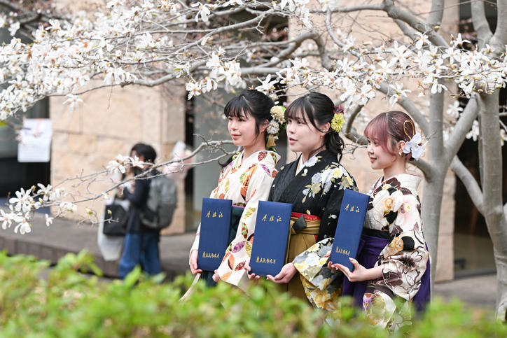 春の陽気に優しく包まれた日吉キャンパスには、一日中、卒業生・修了生たちとそのご家族の笑顔が咲き誇っていました。