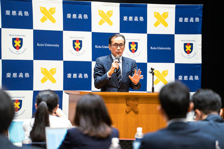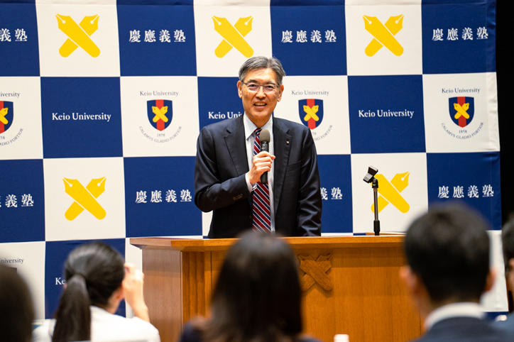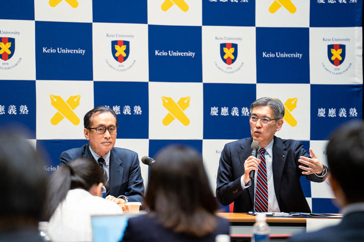 また、米国におけるハーバード大学の留学生受け入れ制限措置に対する見解について、明治時代の官立大学政策により経営窮地に立たされた義塾の経験に触れ、大学にとって最も残念なことは大学から学生が去ることであると述べました。そのため、政府と戦うハーバード大学と同大学での研究を続けたい学生を応援するとし、学生からの個別の相談や大学から直接要請があった場合は支援する姿勢が示されました。