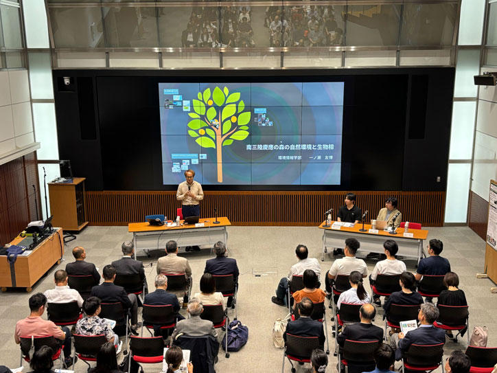 24回目となる今回は、一ノ瀬友博環境情報学部長が「南三陸慶應の森の自然環境と生物相」と題して講演を行い、私たちを取り巻く環境問題に対して、バイオマス・農業・資源循環といった多様な視点から解決を目指す研究や活動についてのお話を伺うことができました。