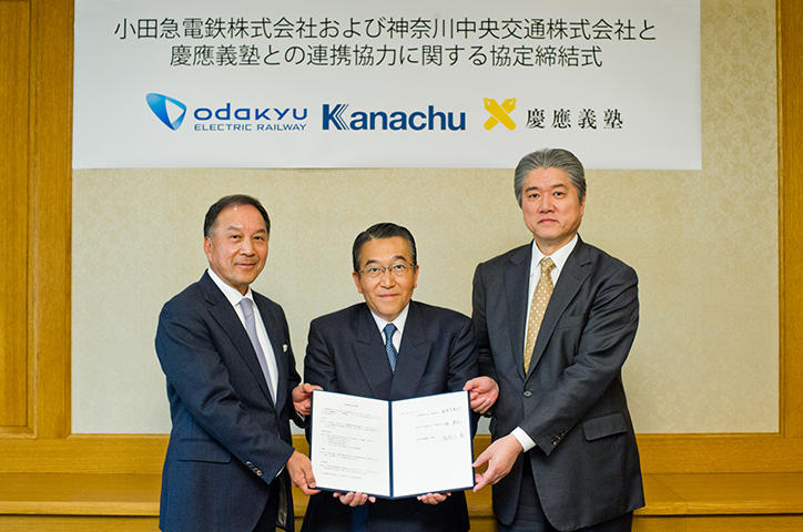 小田急グループの小田急電鉄株式会社(本社:東京都新宿区 社長:星野 晃司)、神奈川中央交通株式会社(本社:神奈川県平塚市 社長:堀 康紀)と慶應義塾(東京都港区、 塾長:長谷山 彰)は、2017年12月18日(月)、最先端技術に係る研究や地域の活性化、人材育成や教育活動などに関して、連携協力協定を締結しました。